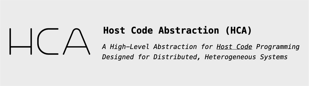 The Host Code Abstraction (HCA) is a high-level programming abstraction that simplifies implementing and optimizing so-called host code which is required in modern parallel programming approaches (e.g., CUDA and OpenCL) to execute code on the devices of distributed, heterogeneous systems.
